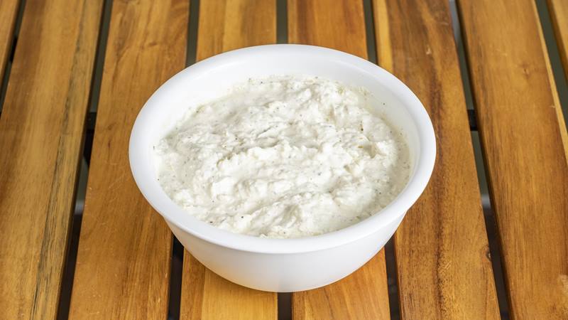 Préparation à base de yaourt grec, feta et poivrons